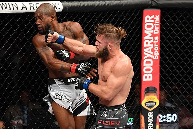 クリンチからすでに強いフィジエフは、接近戦でも確かなカウンター・グラップリングの直感を見せる。このプロ7年目の選手は、UFCでのキャリアにおいて、テイクダウンするのが難しいことを証明している。
